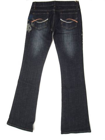 These are ladies tapered leg jeans, the decoration includes a hand-stitched silver and blue floral design on both sides (mostly on right side). The jeans are pre-washed with hand-stressed areas on both the front and back. Since you’re shopping online I’ll offer a 30 day money-back guarantee if you are not happy with it.